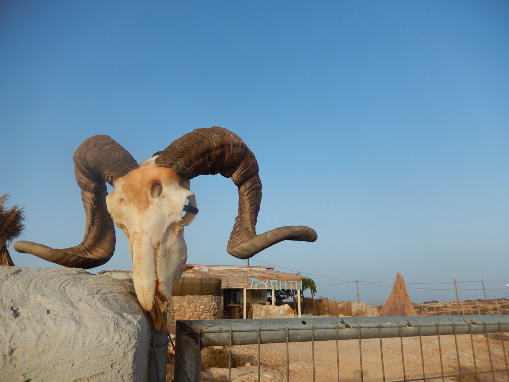 As you may have guessed, many of the residents are hippies in retreat. I met Vasilis whose tall frame and long narrow beard evoked what I imagine Pythagoras to have looked like. Vasilis has lived on Gavdos in a tent for fifteen months. I guess he has had a full social calendar because he hasn’t even made it to Trypiti yet, which was the highlight of my visit. I met Antonio from Portugal who epitomized the permanent nomad with his tattoo sleeve and plugs in both ears the size of a one euro coin. His purpose in life seemed to be moving from one outdoor summer music festival to the next.
