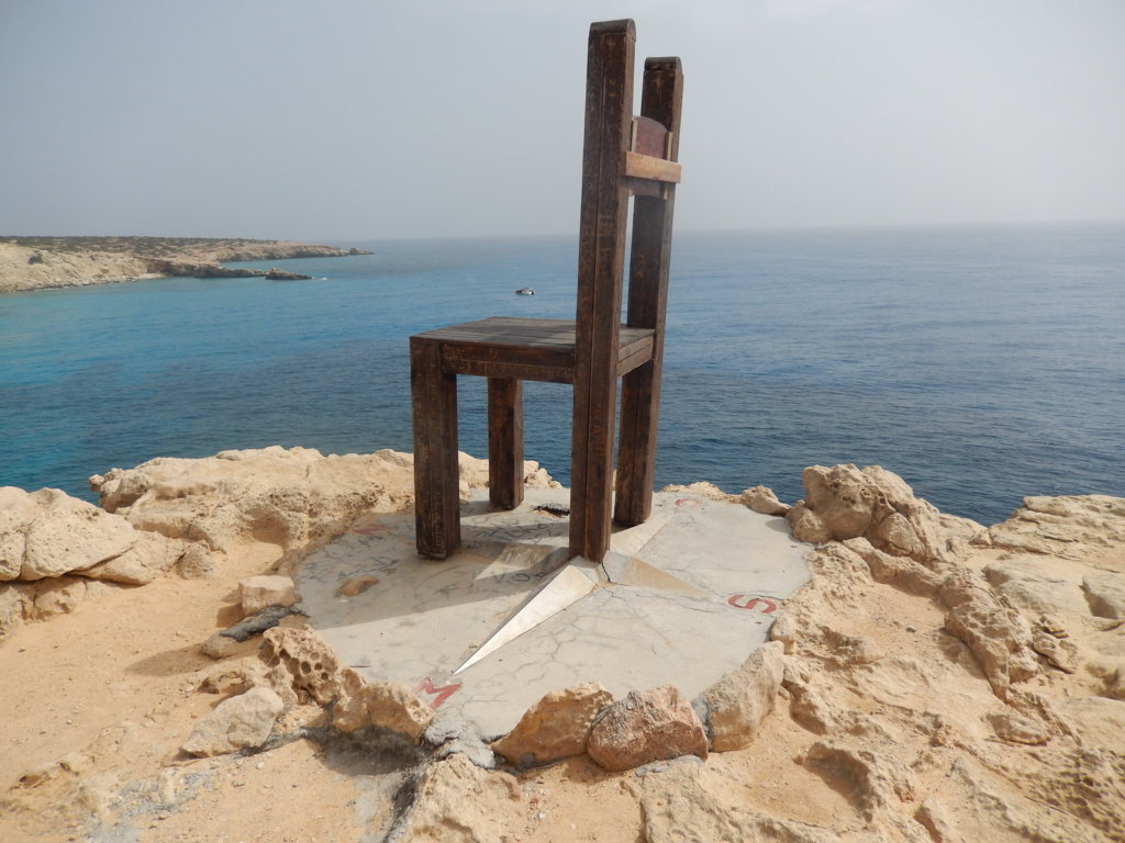 I wanted to sit on The Throne in Trypiti. This beach is the most southern point on Gavdos island. Where the gravel road stops is a path that takes thirty minutes walk downhill to reach Trypiti. At the beach’s most southern tip is a giant chair that faces north towards Europe. The local Russians built the chair and made the path. Their small community began with a nuclear physicist fleeing Chernobyl. They are scientifically attuned to ecological ways to live and they trade their skills for food and other needs. The locals appreciate them and their presence adds to the mystique and allure of Gavdos.