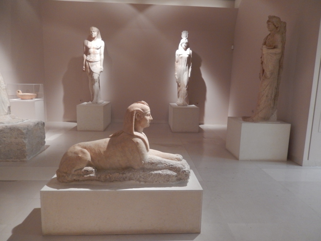 From the Tomb it is a quick fifteen minute ride further inland to the Archaeology Museum of Marathon. One usually thinks of museums in an urban setting but this one is located in an isolated rural environment where tranquility reigns. The prize of the museum is the original Ionic capital of the Nike Trophy. Also exhibited in the small building are pottery from the Cave of Pan and impressive four meter high “kouros” statues from a nearby Egyptian sanctuary. The remnants of that ancient sanctuary lie along the coast in Nea Makri and that is the next destination we biked to upon leaving the museum.