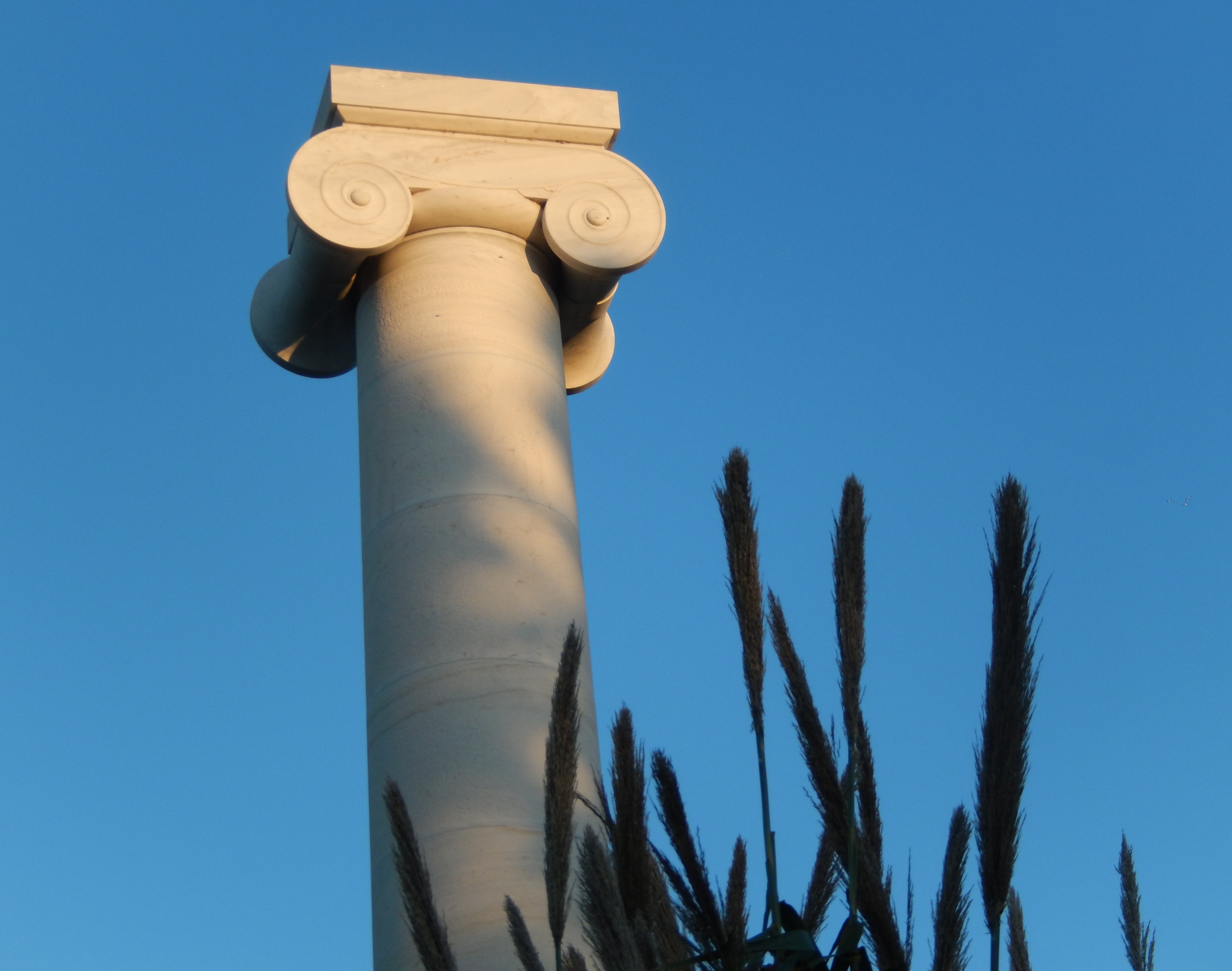 The first antiquity we came upon was the Nike Trophy, a reconstructed marble obelisk located near the spot where in 490 B.C. the Athenians amazingly defeated the Persians even though outnumbered three to one. (Nike means “victory” in Greek). In contrast to trophies in battles between the Greek city-states in which the armor of the defeated was hung on a tree trunk, the trophies of the Persian Wars were grandiose monuments.